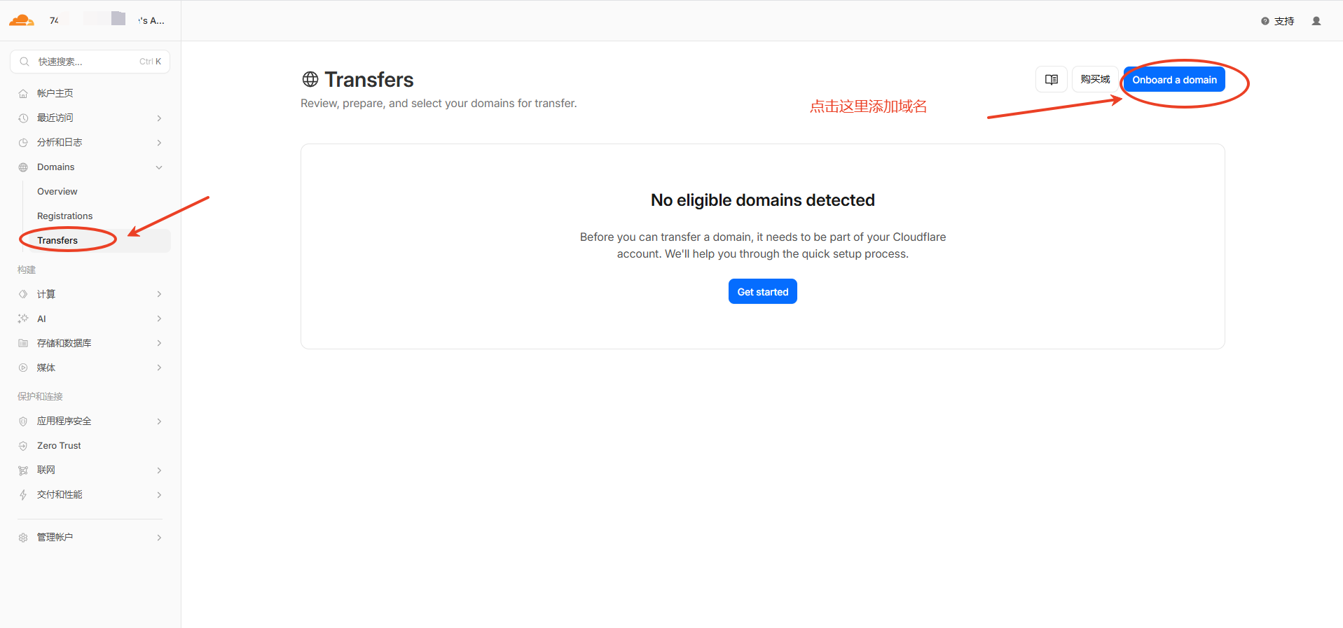 点击Cloudflare这里添加域名