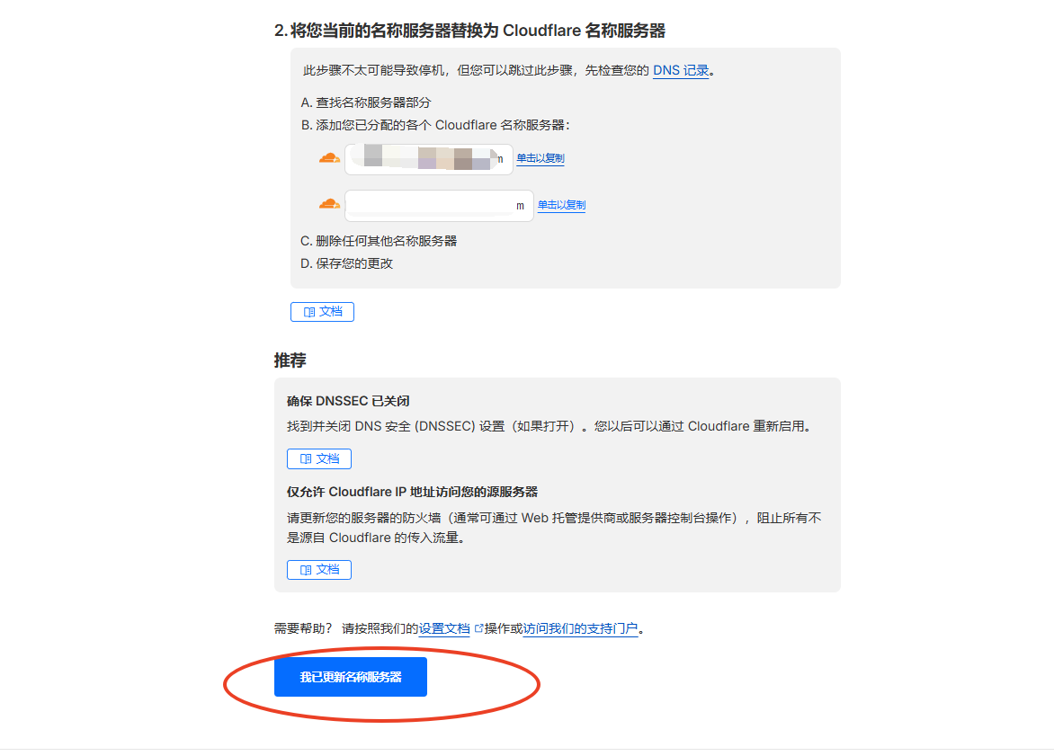 Cloudflare点击我已更新名称服务器