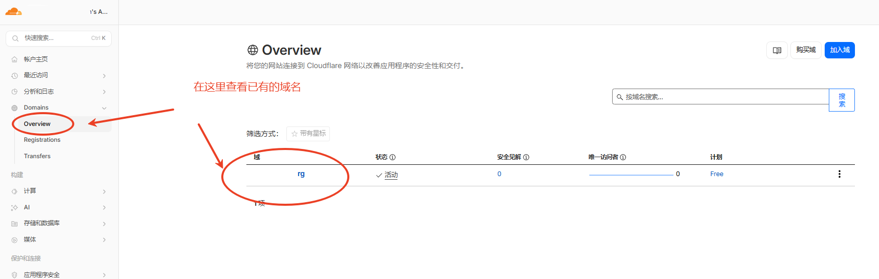 找到已有的域名