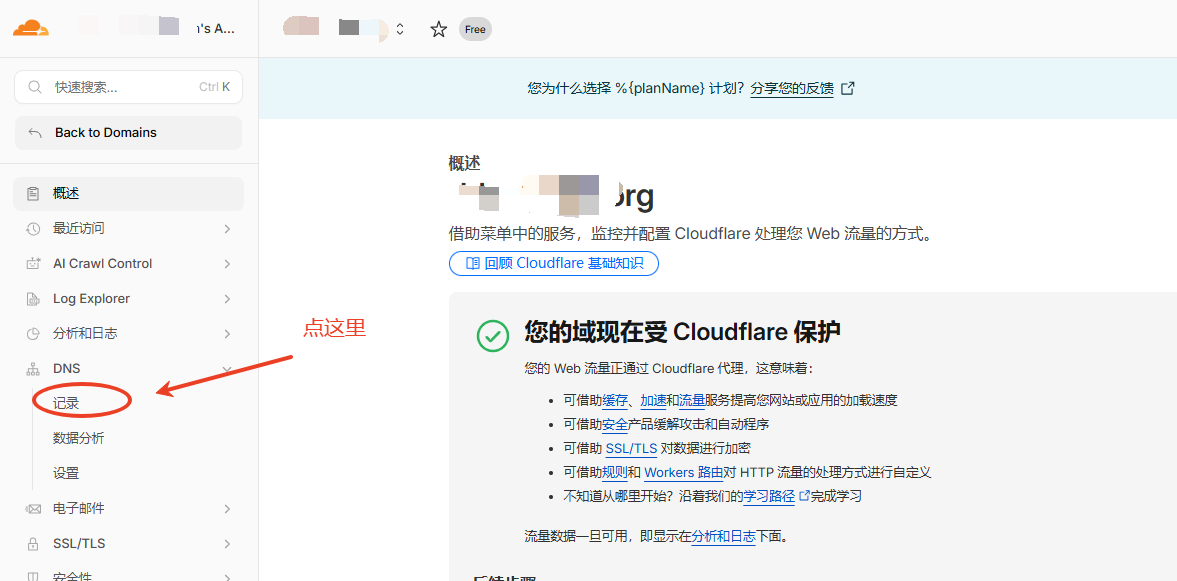 点击DNS里的记录