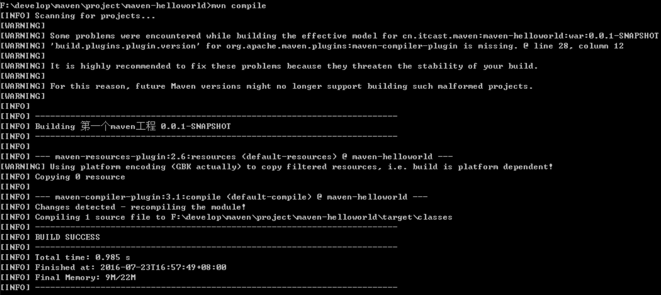 cmd 进入命令状态,执行 mvn compile,如下图提示成功: