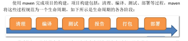 使用 maven 完成项目的构建,项目构建包括:清理、编译、测试、部署等过程,maven 将这些过程规范为一个生命周期,如下所示是生命周期的各各阶段: